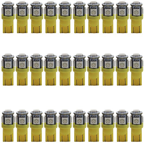 30-Pack 194 Semaforo giallo LED 12V, AMAZENAR auto interni ed esterni T10 5 SMD 5050 Sostituzione chip per W5W 168 2825 Mappa-Dome- Courtesy- Licenza Plate cruscotto indicatore laterale Luce