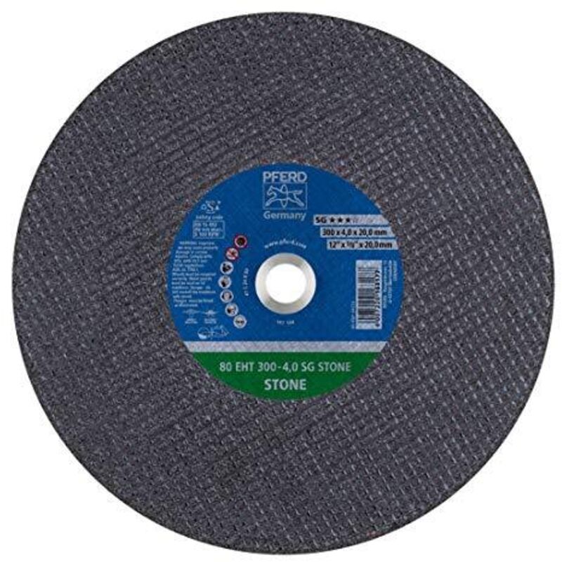 Dettagli tecnici Contenuto 20 pz. Dimensione del prodotto, larghezza 4 mm Dimensione, Ø 300 mm Dimensioni (Ø) 300 mm Idoneità del materiale Alluminio, Metalli non ferrosi, Ghisa, Pietra, Asfalto, Calcestruzzo Tipo prodotto Disco di taglio dritto Ø foro 20 mm Forma: Modello dritto EHT (forma 41)Dimensione granelli: 24Abrasivo: C Disco da taglio dritto Disco da taglio con elevata potenza di separazione e massima durata per l'uso su separatori a benzina e levigatrici da taglio. Tipi di azionamento: Bruciatore a benzina- Smerigliatrice a separazione elettrica Applicazioni: - Scollegamento Materiale: Alluminio- Altri metalli non ferrosi- Ghisa- PietraAsfalto- Calcestruzzo Nota di sicurezza: - Osservare la velocità massima di lavoro del separatore di benzina/separatore e selezionare il disco da taglio adatto (80 o 100 m/s). Vantaggi del prodotto: - Avanzamento rapido del lavoro grazie all'elevata potenza di separazione.- Massima convenienza grazie alla massima durata dell'utensile. Testo