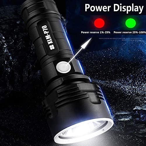 30000-100000 lumen Lampada a luce flash impermeabile a led ad alta potenza Ultra luminosa, 3 modalità Torcia ricaricabile USB ad alta luminosità (25W XLM-L2, Singola batteria al litio)