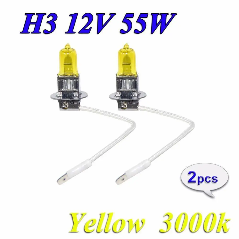 NEW 2Pcs H3 12V 55W 3000K Super Bright Yellow Car Headlight Bulb Fog Lamp Bulb Auto Head Light Bulbs Automobiles Light Source