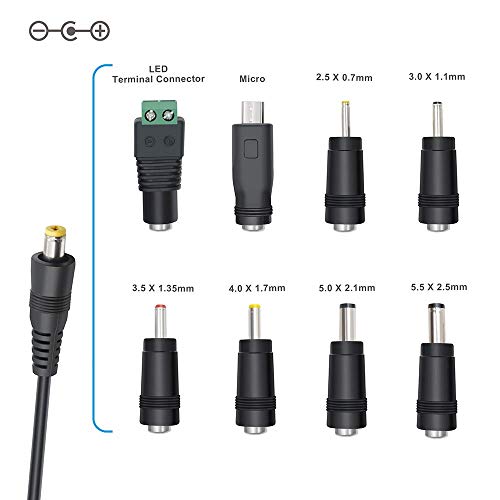 ✓ Caricabatterie da 36 W per molti tipi di piccoli dispositivi elettronici domestici, come laptop, stampanti, digitizer, router, altoparlanti, fax, sistemi di telecamere TFT, DVD, CCTV, strisce LED e altri dispositivi compatibili. !!! Attenzione: polarità connettore DC: polo positivo interno (+), negativo esterno (-).