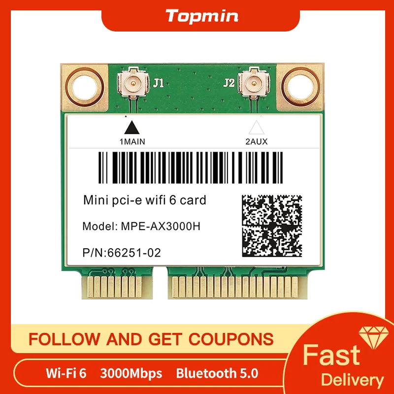 Wifi 6 Dual Band 3000Mbps MPE-AX3000H Wireless Half Mini PCI-E Wifi Card Bluetooth 5.0 802.11ax/ac 2.4Ghz 5Ghz Adapter Laptop