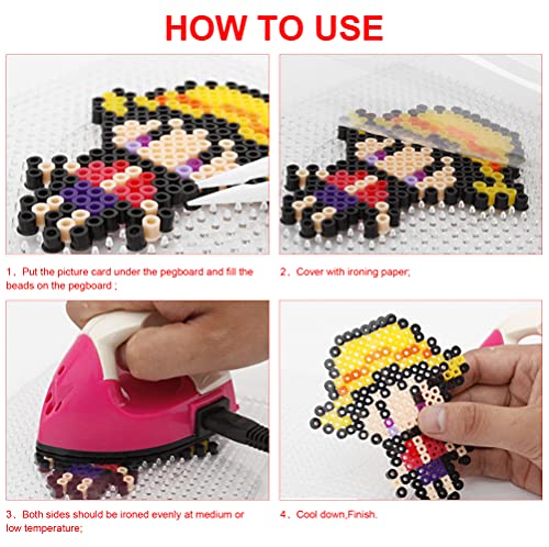 FACILITÀ DI REALIZZARE LA CREAZIONE - Posiziona le perline da stiro con le pinzette sulla pedana e segui la scheda del modello. Metti la carta da stiro sulla parte superiore delle perline e stira delicatamente fino a quando le perline si sciolgono insieme. Gira il disegno per stirare laltro lato, quindi attendi fino a quando non si raffredda. (NOTA: Il Ferro Da Stiro Non è Incluso Nella Confezione);