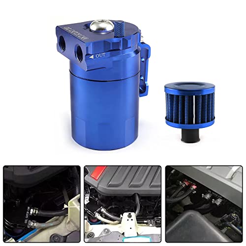 300ml Alluminio Oil Can Auto Reservoir Tank Universal Aria Olio Seperator Con Filtro Aria, Lega di Alluminio con Motore a Benzina Oil Catch Can Reservoir Tank Can (Blu)