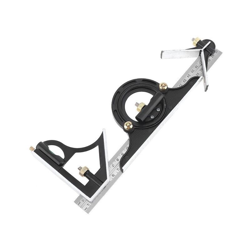 Materiale: il corpo del righello è in acciaio e il telaio angolare è in lega di alluminio, che è resistente e ha una lunga durata Specifiche del kit: campo di misurazione del righello 0-300 mm, altezza del telaio angolare 115 mm, con goniometro, strumento di misurazione del punto centrale e ago per il disegno della linea Scala precisa: scala laser sulla superficie del righello, le figure e le scale sono chiare, corpo del righello ispessito di 2 mm, non facile da indossare Righello versatile: il telaio angolare è dotato di un dado di regolazione automatica, che può essere regolato e misurato a piacimento. Ha anche le funzioni di goniometro, strumento di misurazione del punto centrale e indicatore di livello Ampiamente utilizzato: strumenti di misurazione professionali, adatti per misurare l'angolo, la lunghezza, il centro del cerchio di misurazione, l'angolo standard di 45°, ecc. Descrizione del prodotto: Squadra regolabile in acciaio inossidabile e lega, durevole, resistente alla