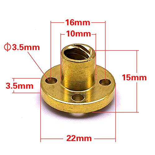 Dado T8 in ottone, con 4 fori per il fissaggio alla macchina.