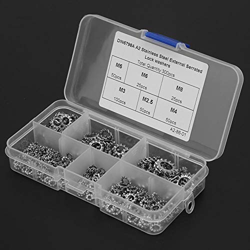 MISURA Il set di rondelle dentate esterne in acciaio inossidabile 304 comprende M2.5 M3 M4 M5 M6 M8 sei dimensioni.Guarnizioni di dimensioni diverse possono soddisfare le diverse esigenze.