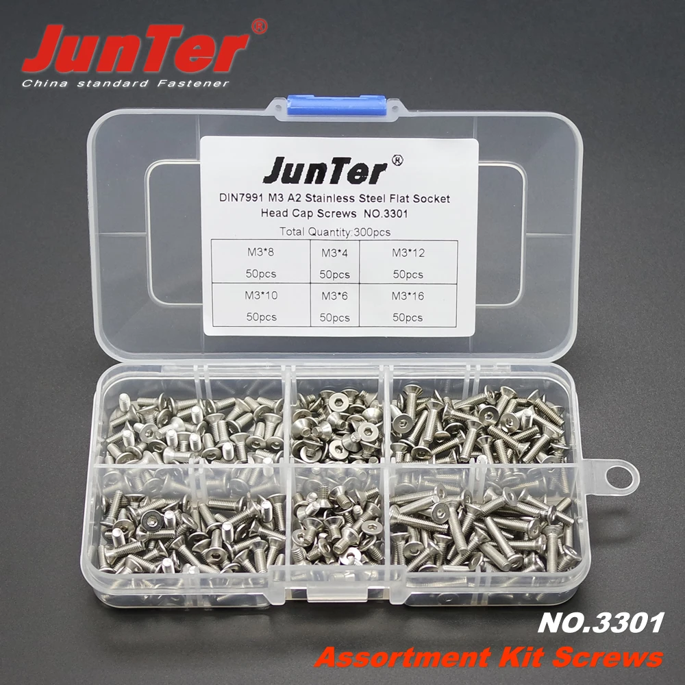 300pcs M3 (3mm) A2 Stainless Steel DIN7991 Flat Socket Head Cap Screws Assortment Kit NO.3301