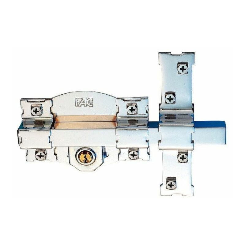 Bullone Fac 301-l/120-p. - Sistema ad L. - Si aziona internamente ed esternamente con chiave, uscendo sempre dalla barra fissa. - Finitura verniciata, nichelata. - Calibro 18 barra calibrata in acciaio mm. - piastra in acciaio da 2 mm. - riscontro in acciaio da 3 mm. - cilindro in ottone da 50 mm. di lunghezza.