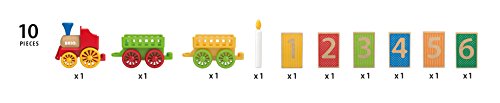 Locomotiva, 2 vagoni, 6 blocchetti in legno numerati (età), candela in legno