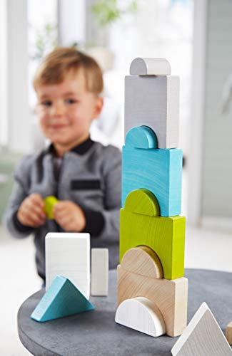 HABA 305457 - Gioco 15 Pietre impilabili, Giocattolo in Legno a Partire da 2 Anni, Multicolore
