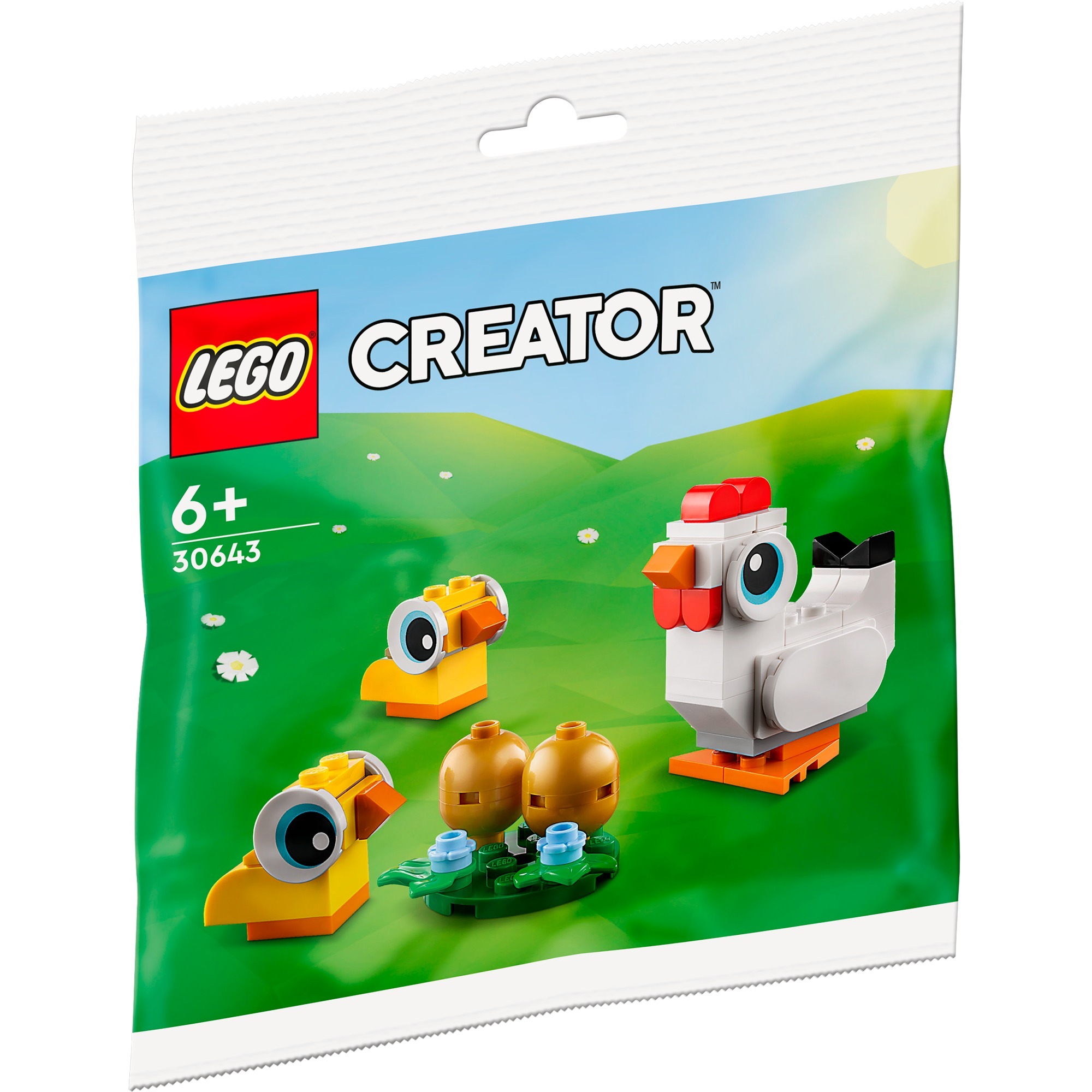 La Pasqua può arrivare con i divertenti polli pasquali della serie LEGO Creator: questo set di 61 pezzi crea una scena carina da costruire ed esporre. Incluso: Una gallina bianca, due pulcini e 2due uova d''oro che possono essere aperte.