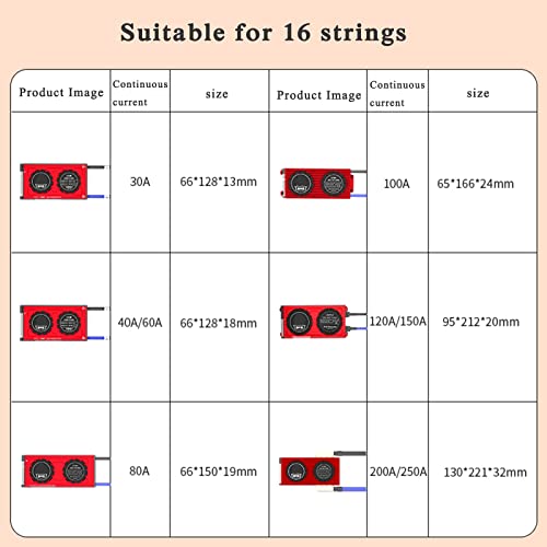 QQXY BMS 16S 30A-250A Scheda di Protezione della Batteria,Lifepo4 BMS PCB Piastra di Protezione Intelligente, con Cavo di bilanciamento, modulo BT e NTC (Size: 16S 48V 100A)