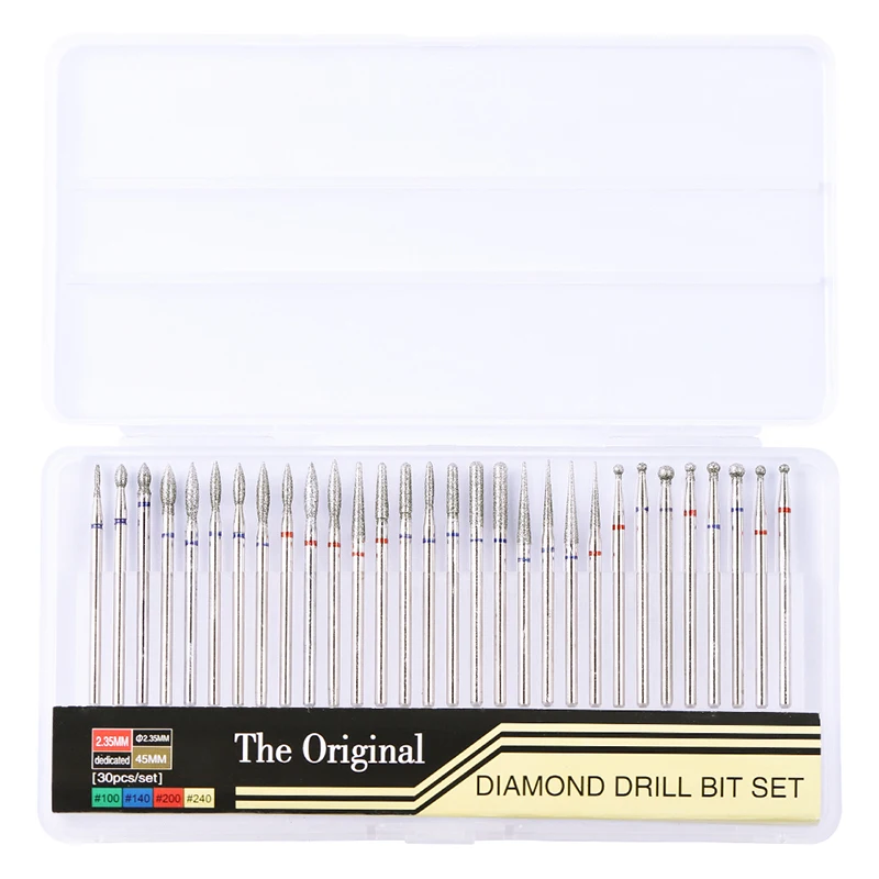 30PCS Diamond Nail Drill Bit Set Tips Milling Cutter Rotary Burr Clean Files for Electric Manicure Pedicure Machine Accessory
