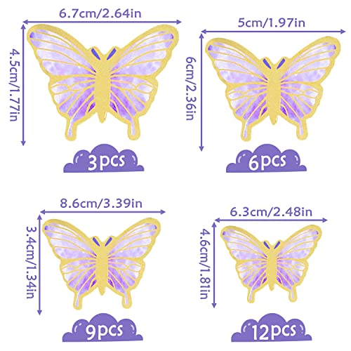 30pcs Farfalla Decorazioni per Torte Glitter 3D Topper per Cupcake Dimensioni Miste Viola Compleanno per Feste di Nozze