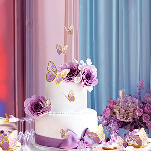30Pcs Farfalla Decorazioni per Torte 3D Farfalla Cake Topper Decorazioni Miste Farfalla Cupcake Toppers per Compleanno Festa Nuziale Torta Wall Party Decorazioni Alimentari (Viola)