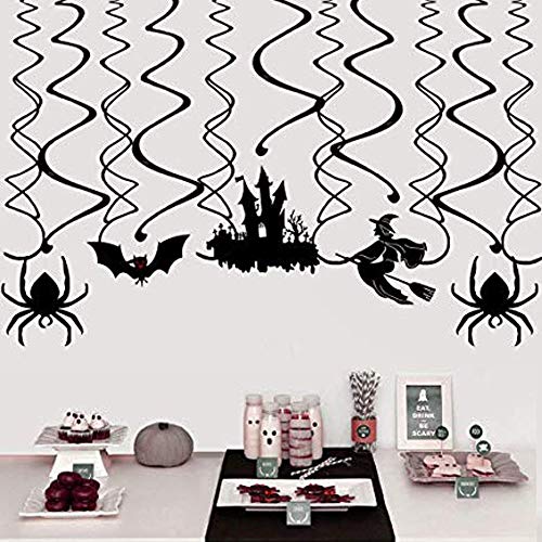Tian 30Pcs Halloween Soffitto Decorazioni di Appendere Festa di Halloween Haunted House Decor incluso Swirl Decorations, Casa infestata, Strega, Pipistrelli, Ragni (nero)