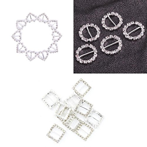 30pcs Heart + Round + Square Shape Ribbon Buckle Sliders for DIY Craft Wedding Card Invitation Favor by Generic