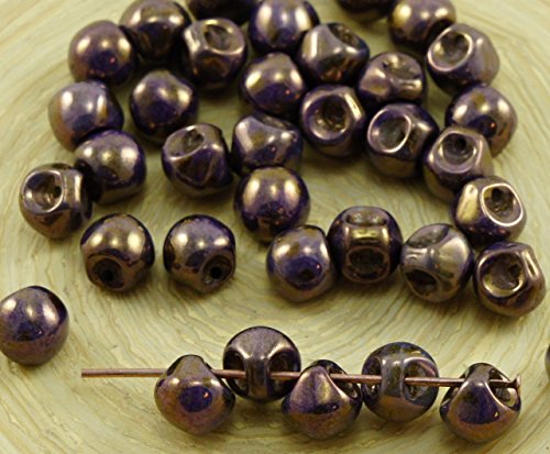 30pcs Picasso Viola Lustro Smalto Pulsante a Fungo ceca Perle di Vetro 6mm x 5mm