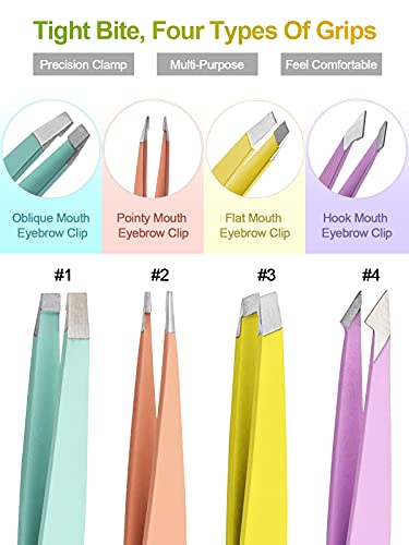 【Kit pinzette per sopracciglia multifunzione】 In questo kit sono incluse 4 diverse pinzette di precisione per sopracciglia, che vanno da pinzette oblique, pinzette a punta, pinzette a punta obliqua, pinzette piatte. Possono essere utilizzati non solo per modellare le sopracciglia, rimuovere peli randagi / peli del mento, rimuovere peli incarniti / schegge / zecche, ma anche per applicare ciglia finte e doppia palpebra.