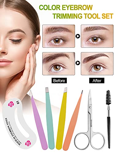 30Pcs Set Di Pinzette per Forbici per Sopracciglia, Kalolary Pinzette per Sopracciglia In Acciaio Inossidabile Kit di Stencil per Sopracciglia Pennello, Pinzette di Grande Precisione per Sopracciglia