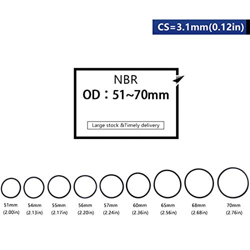 30pcs NBR nero di tenuta O-ring CS 3,1mm OD 51/54/55/56/57/58/60/65/68/70mm nitrile O-Ring paraolio Guarnizione Rondella, 57x50.8x3.1mm