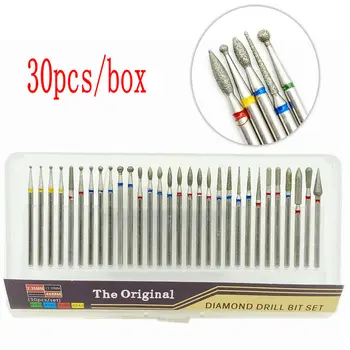 30pcs/set Diamond Grinding Burs Engraving Carving Polishing Glass Jade Stone Drill Bit Dental/nail Rotary Tool Set