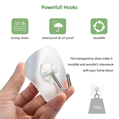 30Pezzi Ganci Adesivi,Trasparenti Gancio Autoadesivo Gancio Adesivo Bagno Ganci Portasciugamani Ganci da Parete per Bagno Cucina per Appendere Asciugamani,Vestiti,Chiavi,Cappelli etc(10kg Max)