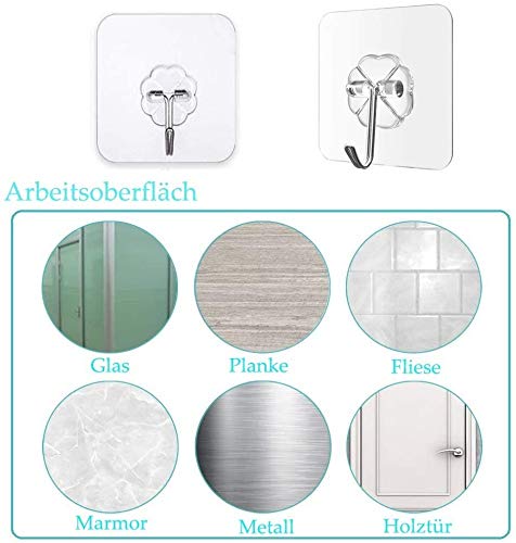 【Multi-Applicazione 】- I ganci adesivi lavorano su molte superfici, come legno,piastrelle,ceramica,metallo,vetro (si noti che le pareti dipinte sono limitate).Il gancio è universale,utile sia in cucina che in bagno e persino nell'armadio,per asciugamani,accappatoi,giacche, sciarpe,foulard e chiavi. ( parete in polvere non è adatta ).