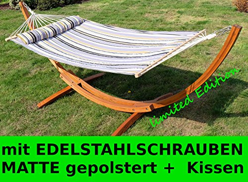 320cm Supporto Par Amaca Limited Edition in Legno larice con Amaca, Cuscino e Tutte Vite Inox de AS-S, Colore:HM3-NAGUA