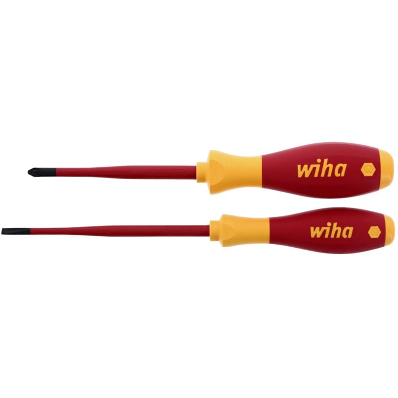 Set di cacciaviti isolati, numero di pezzi 2, materiale della maniglia multicomponente, punta stile gruppo scanalato/Phillips, include Keystone scanalato 3/16 in. x 5 in, Phillips # 2 x 4 In., Strumento standard (accessorio necessario per la legatura), manico design ergonomico, forma codolo rotondo, materiale gambo acciaio, finitura in ossido nero, standard EN/IEC 60900, ASTM F-1505-01, VDE 0682/part 201, DIN 7437, NFPA70E e CSA