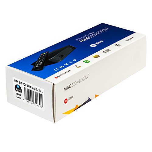 MAG 322w1 Original Infomir / HB-DIGITAL IPTV SET TOP BOX con WLAN (WiFi) integrato fino a150Mbps (802.11 b/g/n) 1x1 Multimedia Player Internet TV IP Receiver (HEVC H.256 support) Nachfolger von MAG 254 + HB Digital HDMI cavo