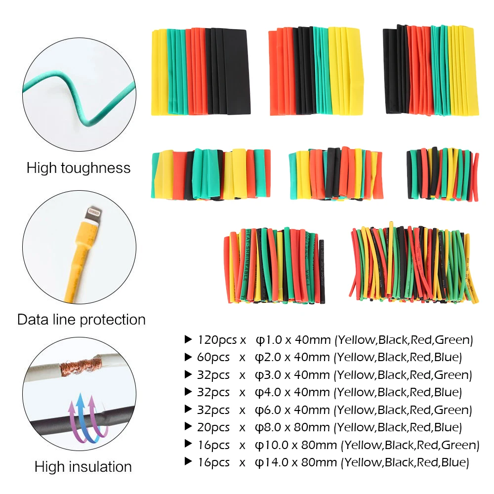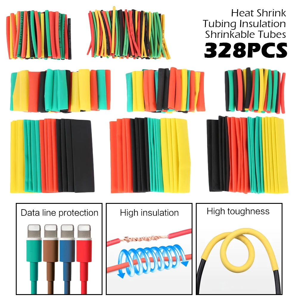 328PCS Heat Shrink Tube Kit Insulation Sleeving Tubes Assortment Electronic Polyolefin Wire Cable Sleeve Kit Heat Shrink Tubes