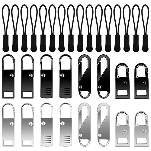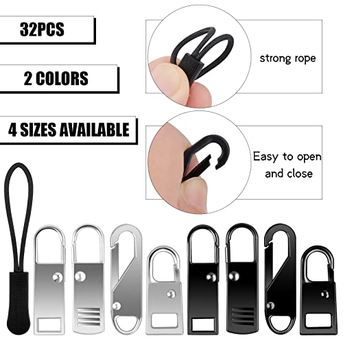 32Pcs Cerniera Sostituzione Metallo Chiusure Lampo Estensione Cursore Cerniera Lampo di Ricambio in Metallo Linguette per Riparazione Zip per Chiusura Lampo Abbigliamento Sportivo Zaini, Argento&Nero