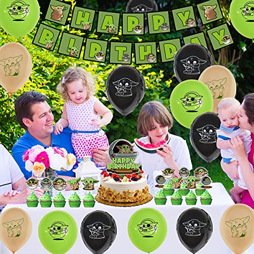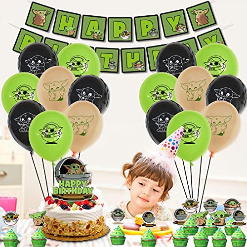 32Pcs Baby Compleanno Party Supplies - simyron Baby Tema Decorazioni, Yo_da Tema Decorazioni Feste Compleanno Banner, Cupcake Topper, Palloncini per Bambini Adulti y Baby Shower Decor