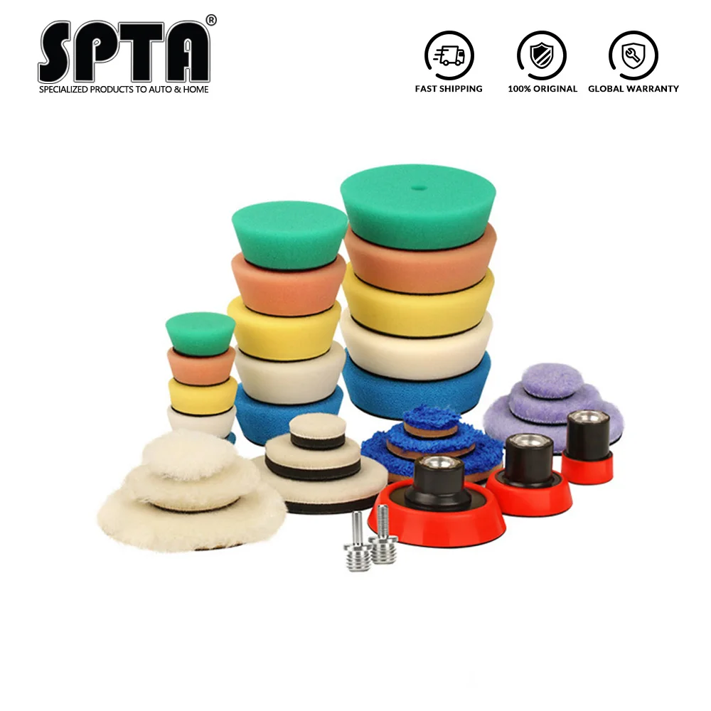 SPTA 32Pcs Mini Polishing Pads Sponge Polishing Pads Waxing Buffing Pad Backing Plate For Mini Dual Action Polisher Car Polisher