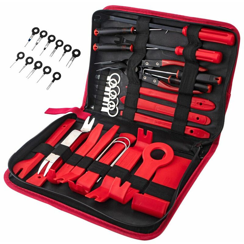 Nome prodotto - Set di strumenti per smontaggio audio per auto 39 pezzi (39 pezzi) 11 piastre paramotore + 11 estrattori per aghi con boccola in gomma + 3 estrattori per aghi con impugnatura liscia + 7 strumenti per chiavi + 1 pinza per apertura lampada + 1 cacciavite da 8 pollici + 1 cacciavite da 6 pollici + 4 ganci paraolio 【Colore】Rosso/Blu [Materiale] 11 materiale piastra scorrevole: materiale POM super duro + nylon cacciavite + apri Materiale: acciaio al manganese < p>Chiave audio + estrattore ago terminale Materiale: acciaio inossidabile Gancio paraolio: impugnatura in nylon + asta in lega di zinco Filettatrice automatica: testina in nylon + lega di zinco< /p> Cablaggio auto: materiale: filo di acciaio 【Pacchetto】 Alta elasticità, borsa Oxford resistente all'usura e ad alta resistenza 【Dimensioni confezione】32*23*5 cm 【Specifiche】 Imballaggio in tessuto Oxford 【Peso】 1097 g 【Uso del prodotto】Rimuovi d Il pannello interno dell'auto, il cruscotto, l'area di controllo centrale