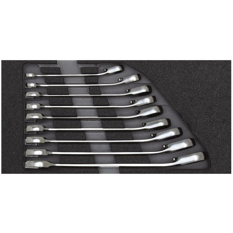 Chiave combinata a cricchetto 8 10 12 13 14 15 16 17 19 mm, Testa cricchetto inclinata di 15°, corsa a destra/sinistra reversibile, Bocca inclinata di 15°, Superficie cromata satinata opaca, Acciaio cromo-vanadio, In modulo in espanso Contenuto per set 1710.0080 1710.0100 1710.0120 1710.0130 1710.0140 1710.0150 1710.0160 1710.0170 1710.0190 1500 E-6-7R L 1500 ED-30 R99910007 Conservazione Schaumstoffmodul Ci sono istruzioni per lo smaltimento sulla batteria? 0 Larghezza totale [mm] 158 mm Peso netto [kg] 1,43 kg Certificato VDE 0 Dimensioni dell'imballaggio 1 Contenuto (numero di pezzi) 9 tlg. Materiale (F) Schaumstoff Le istruzioni per lo smaltimento sono contenute nelle istruzioni per l'uso? 0 Elenco dei pezzi (testo) Ringratschenmaulschlüssel SW 8 10 12 13 14 15 16 17 19 mm Paese di origine Taiwan Lunghezza totale 310 mm Istruzioni per lo smaltimento dell'utensile 0 Registrazione REACH disponibile 0