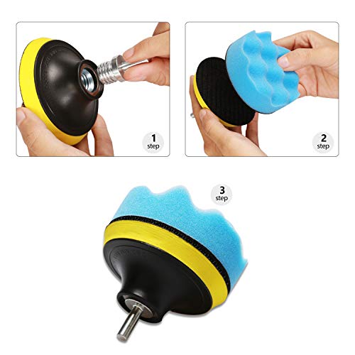 SPTA 34Pcs Kit Composto Tampone Lucidatura Lana Spugna per Lucidatura Auto Lucidatrice per Auto con Kit Adattatore Trapano M14 + Disco per Lucidatura + Spazzola di Pulizia (3 Pollici)
