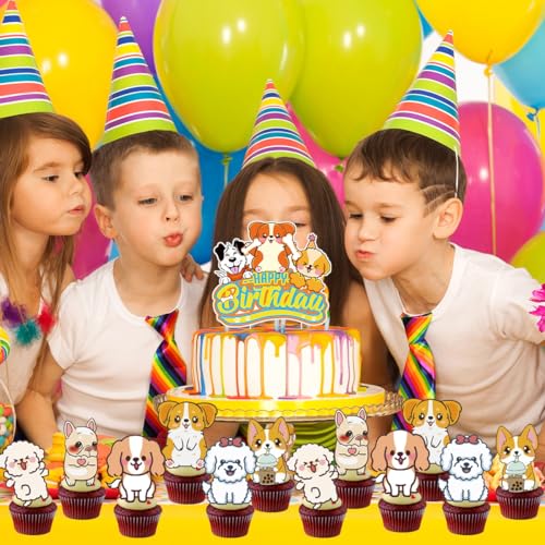 34PCS Dog Decorazioni di Compleanno - Miotlsy Decorazioni per Torte a Forma di Cane, Decorazioni per Feste di Compleanno, Topper Cupcake per Bambini Applica a Festa di Compleanno Matrimonio