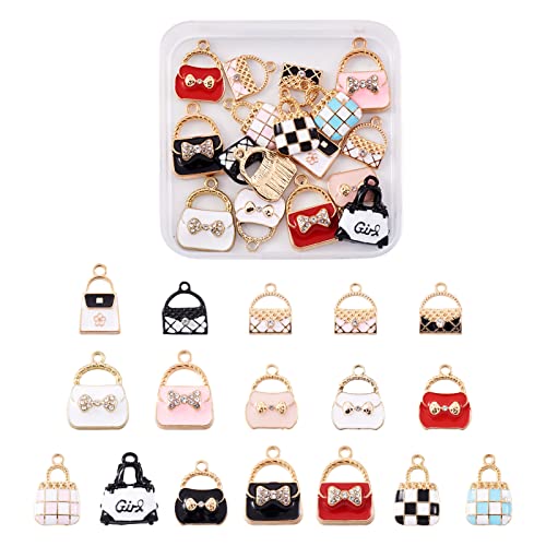 34Pcs 17 Stili Lega Smalto Charms Donna Pendenti Della Borsa Con Cristallo Strass Ragazze Ciondola I Fascini per la creazione di Gioielli Artigianato Collana FAI DA, Smalto