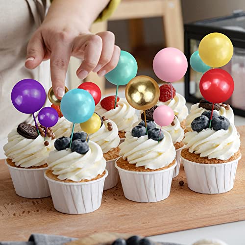 34Pezzi Mini Balloon Cake Topper 5 Dimensioni Palloncin Schiuma Cupcake Toppers 7 Colori Rosa Oro Viola Giallo Rosso Blu Verde Inserto Torta Decor Forno Pallina Rotonda Cake Topper Baby Shower