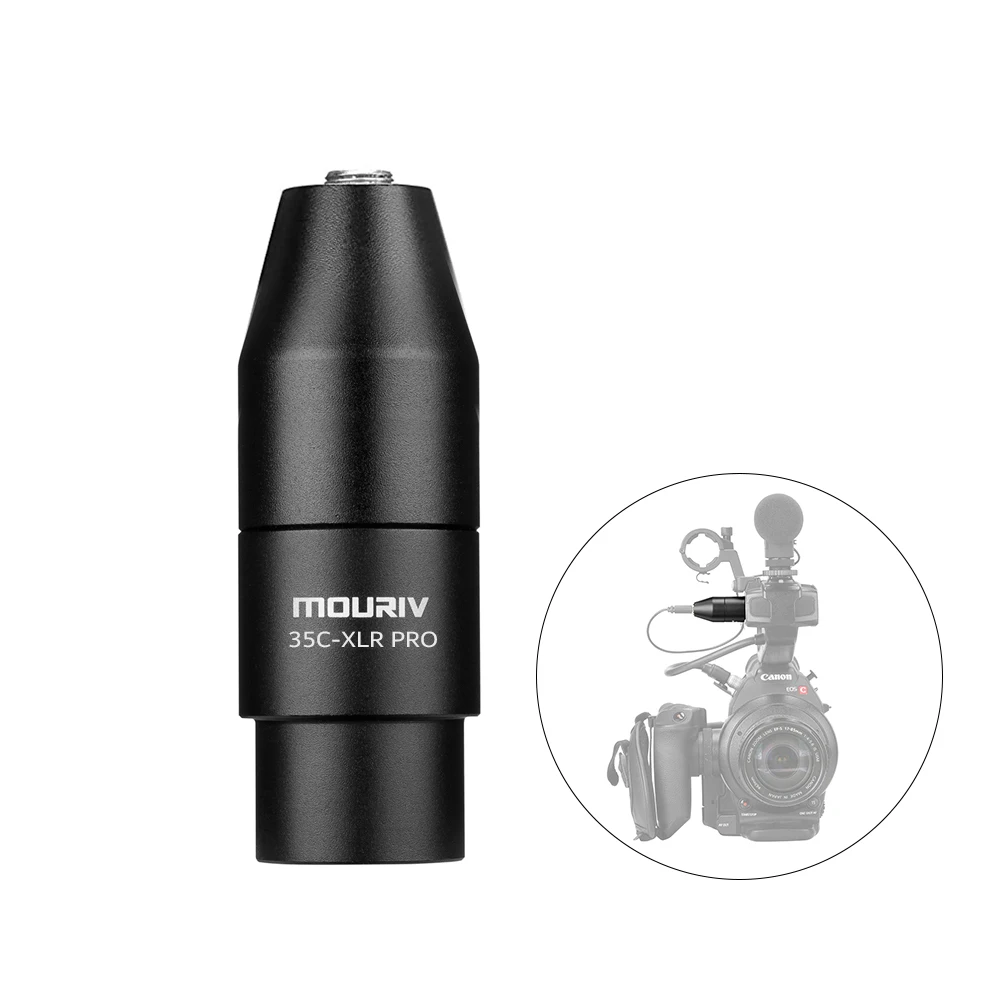 35C-XLR PRO 3.5mm (TRS) Mini-Jack Female Microphone Adapter to 3-pin XLR Male Connector with Integrated Phantom Power Converter