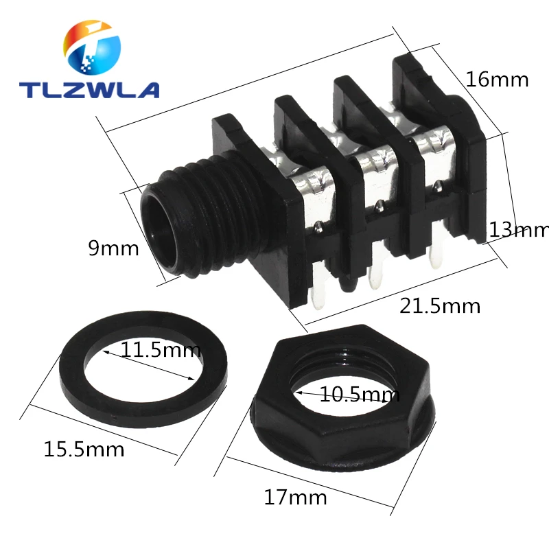 5pcs 6.35mm/6.35 Stereo Audio Microphone Female socket/Jack Connector 6PIN