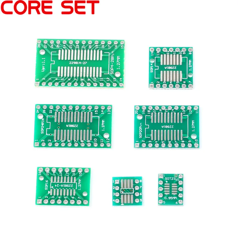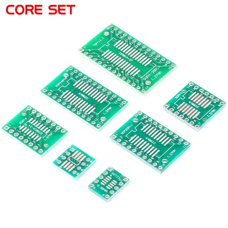 35pcs=7value*5pcs PCB Board Kit SMD Turn To DIP Adapter Converter Plate SOP MSOP SSOP TSSOP SOT23 8 10 14 16 20 24 28 SMT To DIP