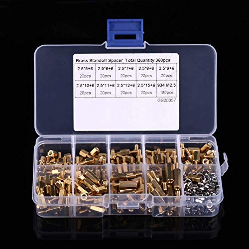360pcs M2,5 ottone maschio-femmina standoff e acciaio inossidabile esagonale dadi assortimento kit PCB scheda accessorio di riparazione con scatola di immagazzinaggio