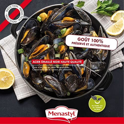 Pentola progettata in acciaio smaltato nero di alta qualità e garantito contatto alimentare