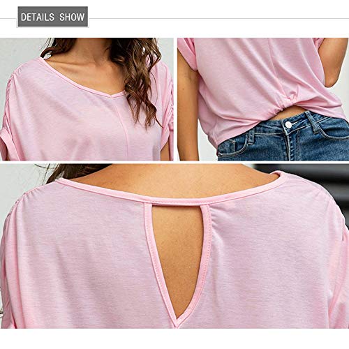 365-Shopping Shirt Spalle Scoperte Bluse e Camicie Estive Donna Camicetta Manica Corta Casual Top Scollo a Barca Tinta Unita Stile Impero (Asian XXL, Verde)