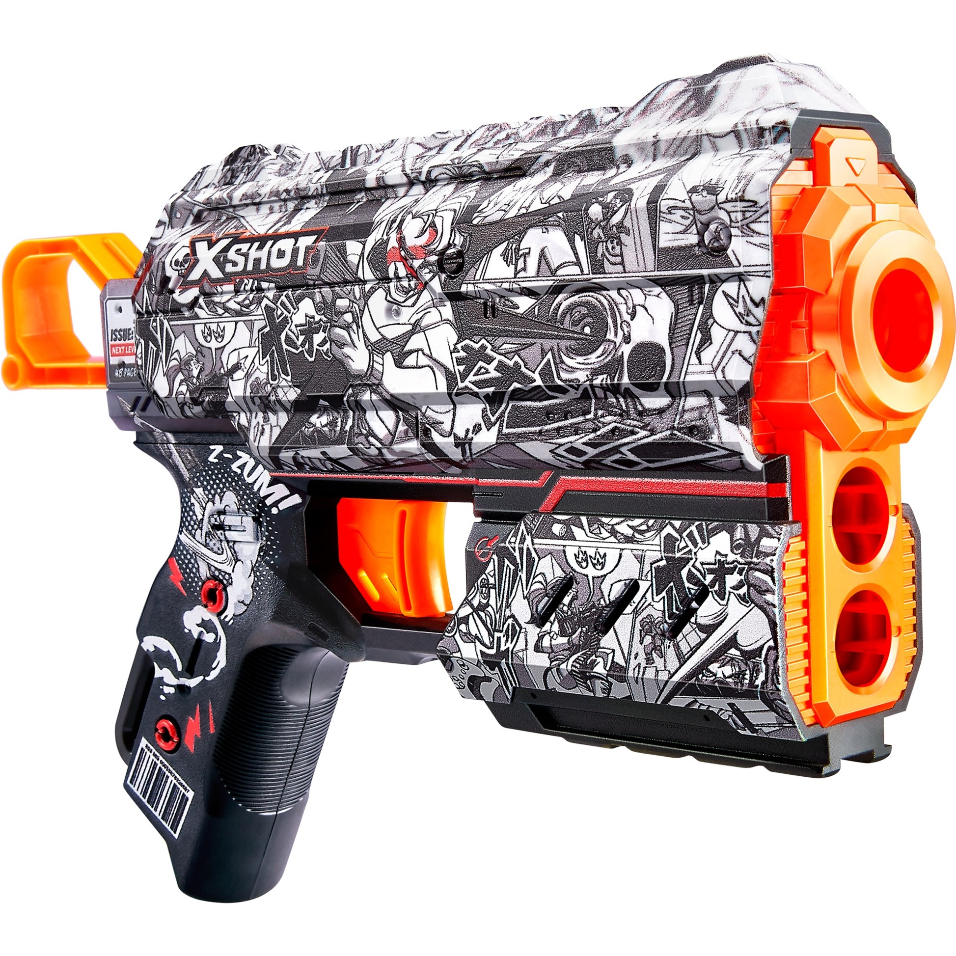 Con i dart blaster della serie X-Shot Skins, le esperienze di gioco diventano realtà: con il Blaster Flux con una capacità di un dardo e una memoria per altre due freccette sul davanti, puoi iniziare subito. Il Flux è in grado di colpire bersagli a una distanza massima di 27 metri. Il Flux è disponibile in sei fantastici design e viene fornito con 8 freccette in schiuma originali con tecnologia Air Pocket.