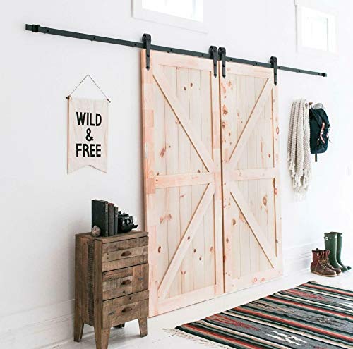 366CM Binario per Porta Scorrevole Kit, Nero e Rustico Porta Scorrevole Kit Accessori con Guida a Pavimento Regolabile Scorrevole,(Fibbia a fiore di prugno a quattro sezioni) doppia porta a forma